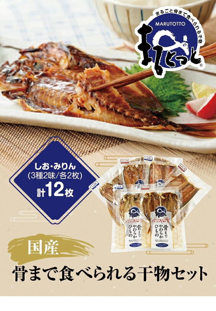 国産厳選「あじ・さば・ほっけ」骨までまるごと!カルシウムたっぷり干物3種セット。骨まで美味しく、カルシウム約13倍!現代人に不足しがちなカルシウムを手軽に補給。たんぱく質、コラーゲン、DHA、EPAも豊富。安心・安全の国産あじ・ほっけ・さばを使用。頭からしっぽまで、まるごと食べられる!面倒な骨取り不要。お子様やご年配の方も安心。塩味・みりん味の2種をセットにしました。ご飯のお供、お酒のおつまみ、料理の材料にも。様々なシーンで楽しめます。