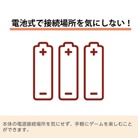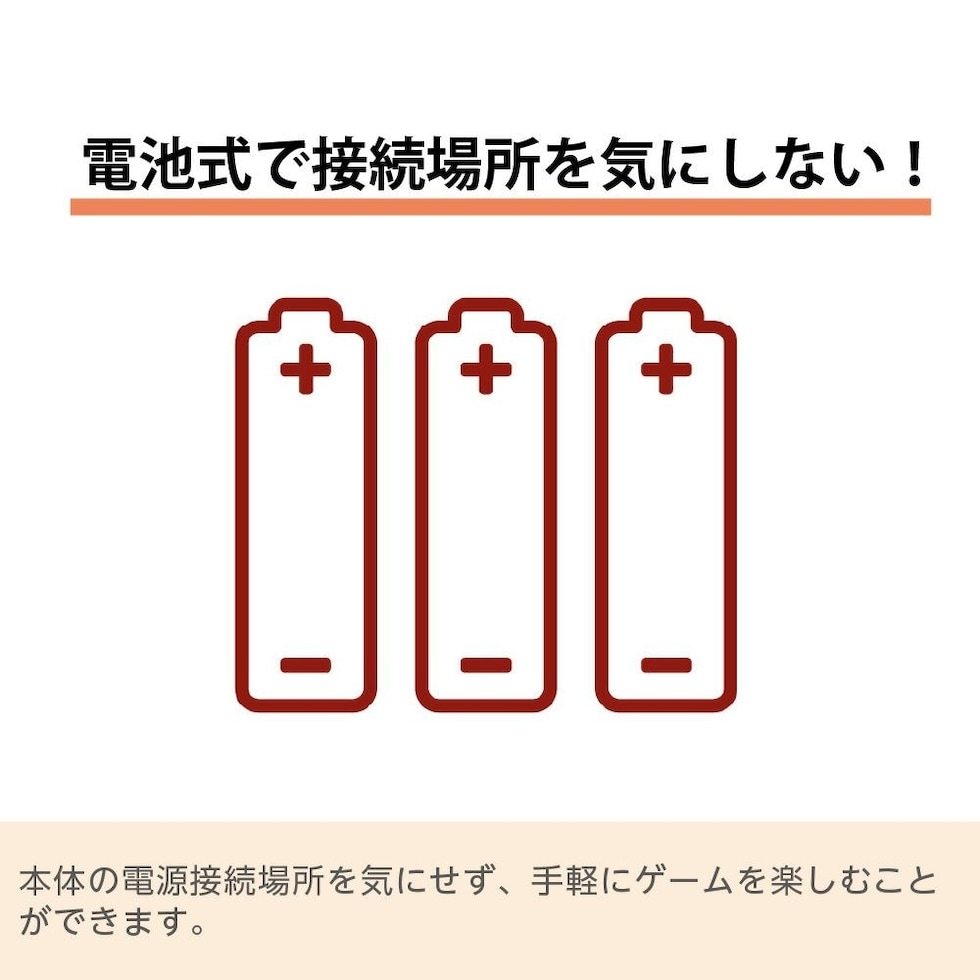 頭脳系やスポーツ系など、幅広いジャンルのゲームを多数収録。子供の頃を思い出して夢中になったり、お子さんと一緒に楽しんだりするのにぴったりです。本体は約37gと軽量で、手のひらサイズ。単4電池3本(別売)で動作するので、場所を選ばずにゲームを楽しめます。