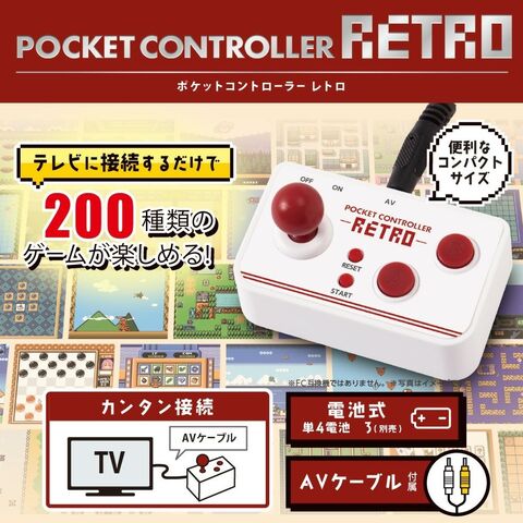 テレビに繋ぐだけで、懐かしのゲームを200種類も楽しめる「ポケットコントローラー レトロ」です。ゲームソフトは不要なので、届いてすぐに遊べます。