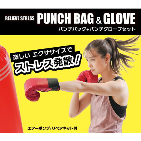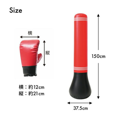 ●サイズ/パンチバッグ:約直径37.5×高さ150cm、パンチグローブ:約縦9.5×横13×高さ21cm