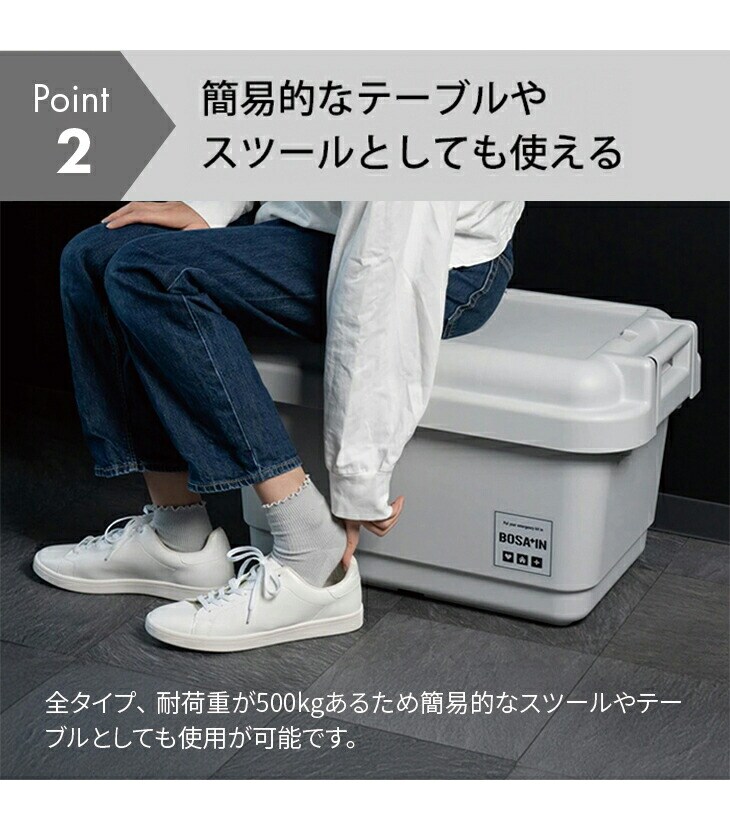 フタはなんと約500kgの耐荷重! とても丈夫なので、簡易的なイスとしてもお使いいただけます。