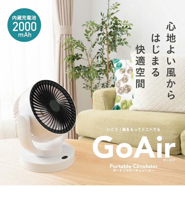 ポータブルサーキュレーター GoAir コードレス 軽量 部屋干し 静音 上下角度調整 風量調整 カンタン操作