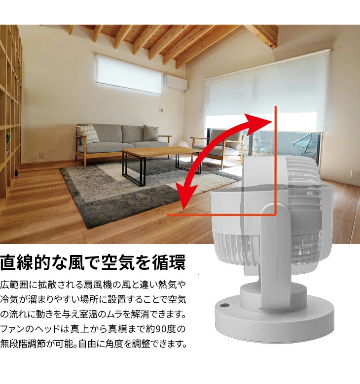 空気循環を促進: 直接的な風で室内の空気を循環させ、エアコン効率をアップ。節電にも繋がります。
