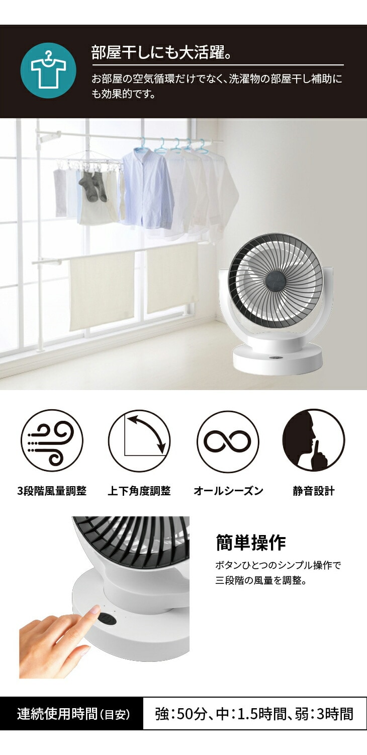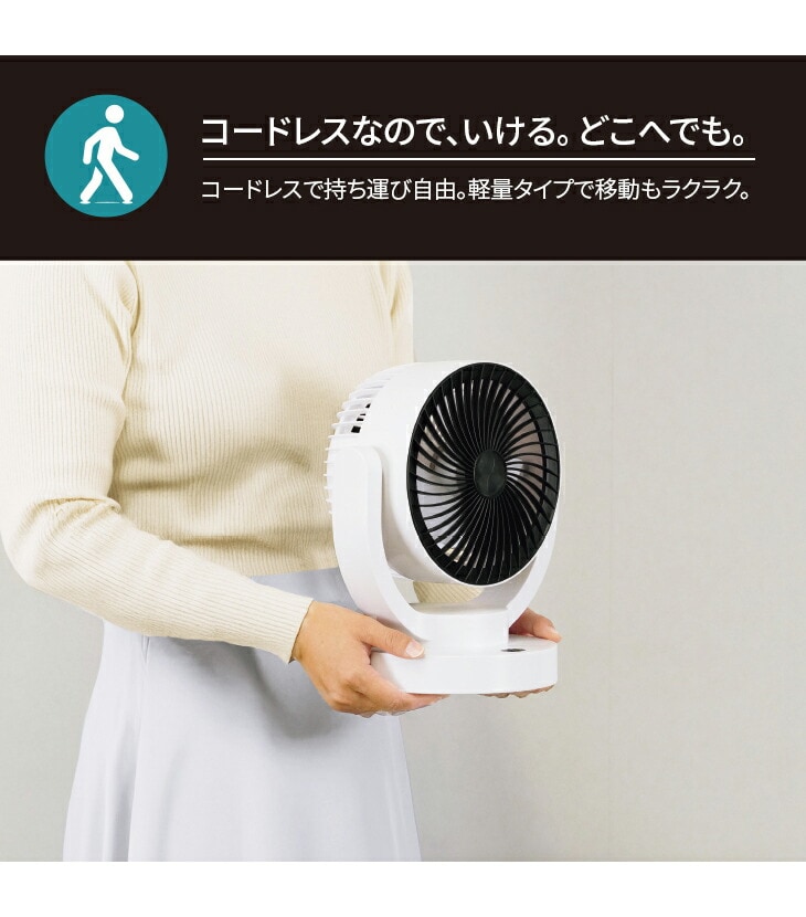 コンセント不要!家中どこでも涼風を。持ち運びラクラクなコードレスサーキュレーター。