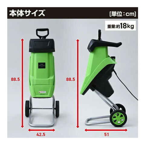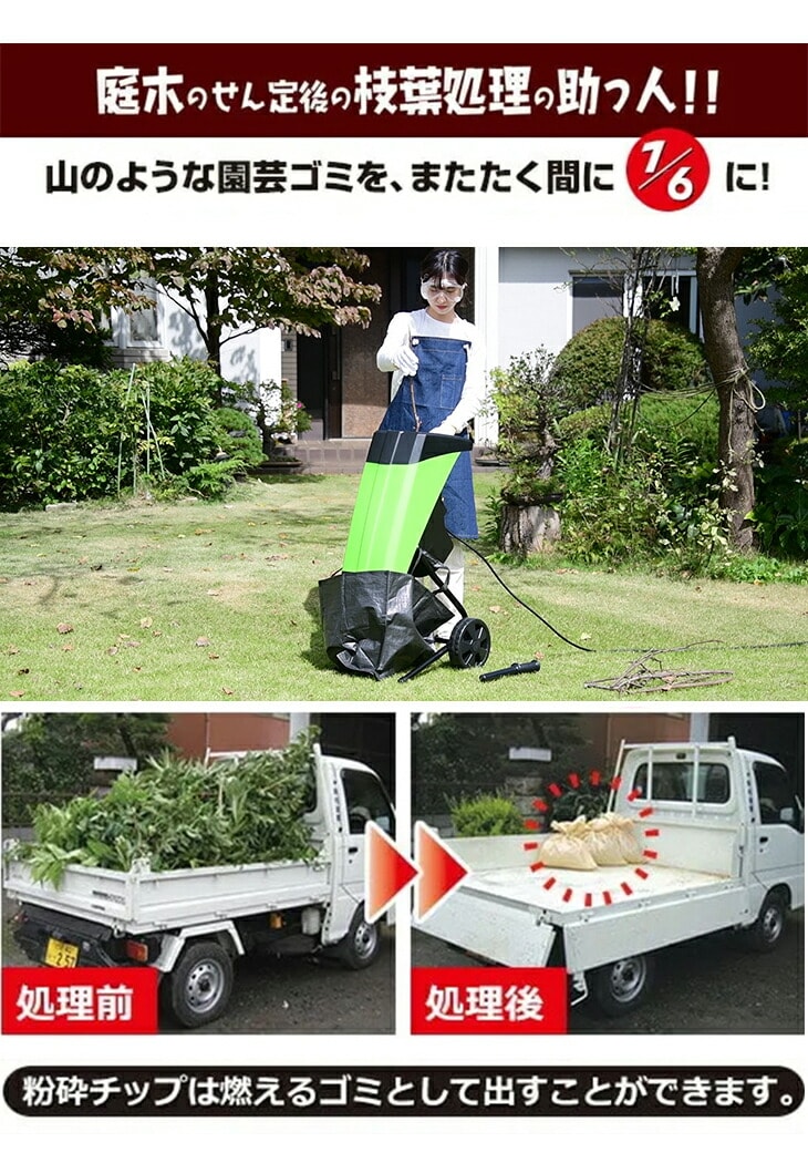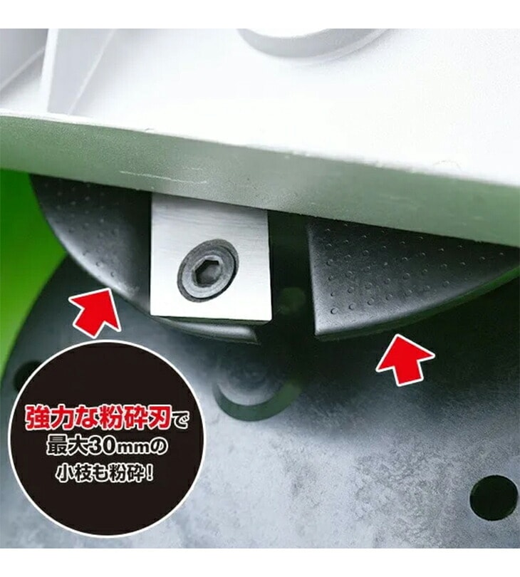 最大30mmの太枝も強力粉砕。園芸ゴミをまたたく間に1/6サイズに。
