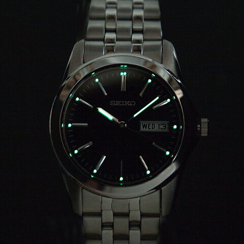 ●仕様/クォーツ(電池式)、留め金:中留三ツ折れプッシュ式タイプ、平均月差±15秒、ルミブライト、カレンダー機能(日付・曜日表示)、日常生活防水(3気圧)