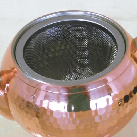 銅の成分が水中に微量に溶け出して、雑味の原因のひとつとなるカルキを分解します。熱伝導に優れた銅は、お茶の出を早め、渋みが少なく香り豊かな味わいを引き出します。