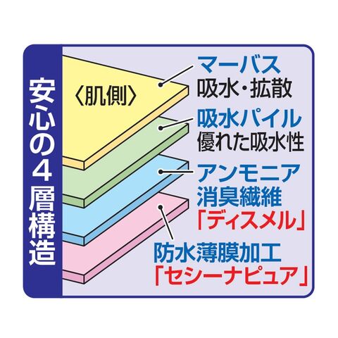 安心の4層構造で長時間の外出時も安心構造でいつでも快適に。お腹がすっぽり隠れる深ばきタイプのパンツ。