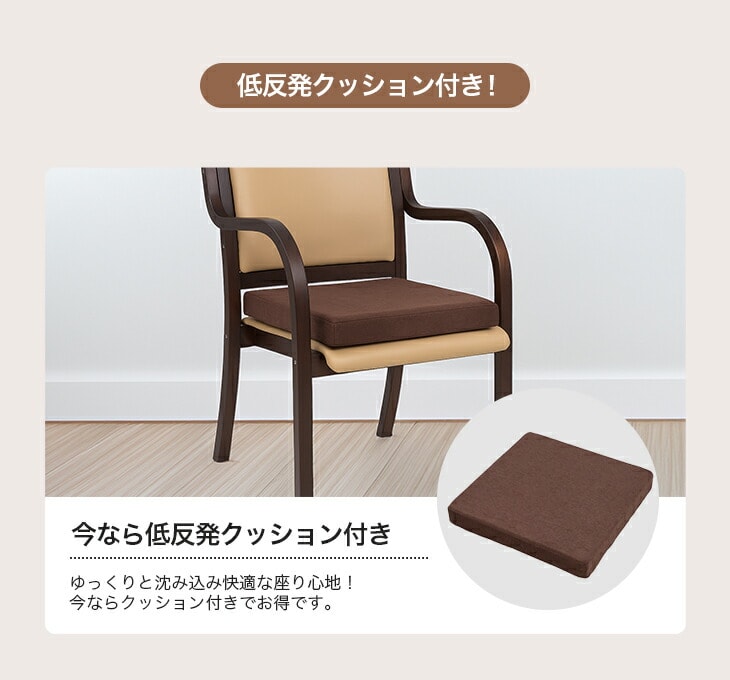介護福祉士がお薦めする立ち座りサポートダイニングチェア 同色2脚組 低反発シートクッション付き
