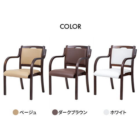 介護福祉士がお薦めするダイニングチェア。汚れがきれいに拭き取れる張り地で、座面は大きく前に垂れた疲れにくい形状です。安定性に配慮し、上からの圧力が分散する設計。ダイニングテーブルにちょうど良い高さ。出し入れに便利な持ち手付き。立ち上がりやすい肘付き。脚底にはキズ防止用のパーツ付き。手のひらへの違和感が少ないアール加工も。