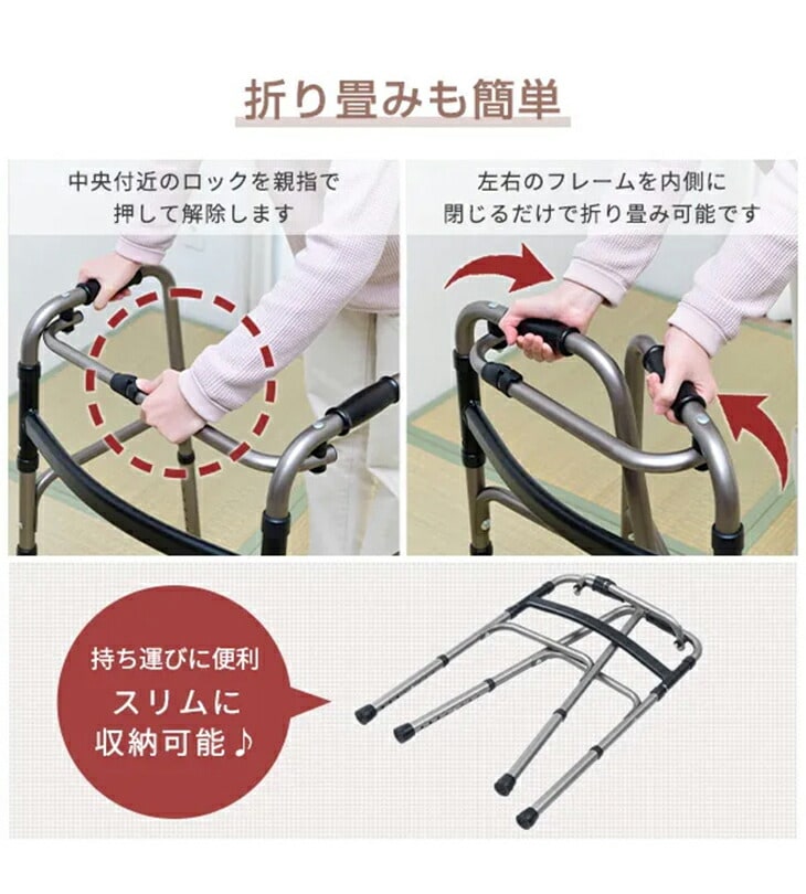 歩行器 折りたたみ 立ち上がりサポート 歩行 介護 リハビリ 高さ調整 耐荷重90Kg