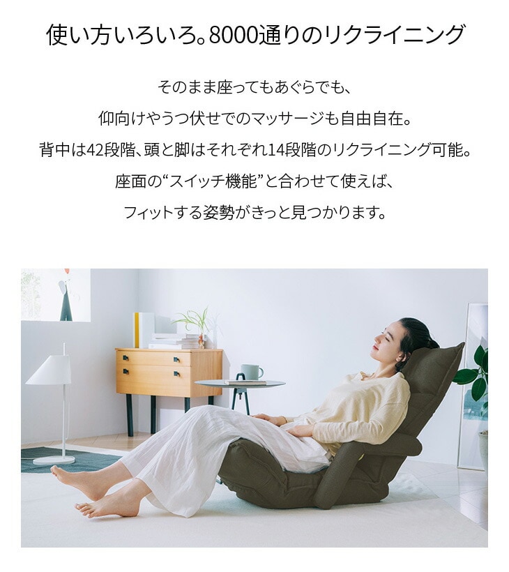 多彩なリクライニング機能と“独自のスイッチ機能”で、快適な姿勢をキープしながら、お好みの位置をマッサージすることができます。