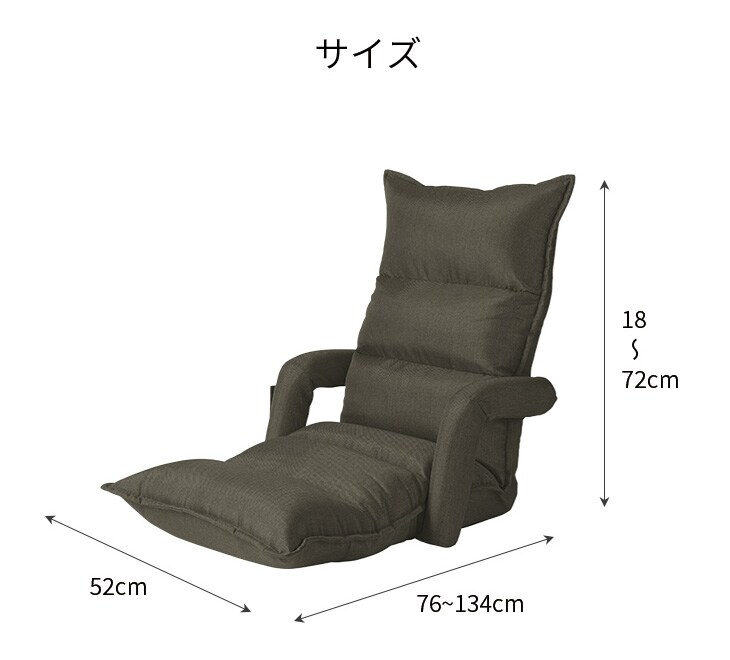 ●サイズ/幅約52×奥行76~134×高さ18~72cm、座面高:約15cm、電源コード長さ:約1.85m