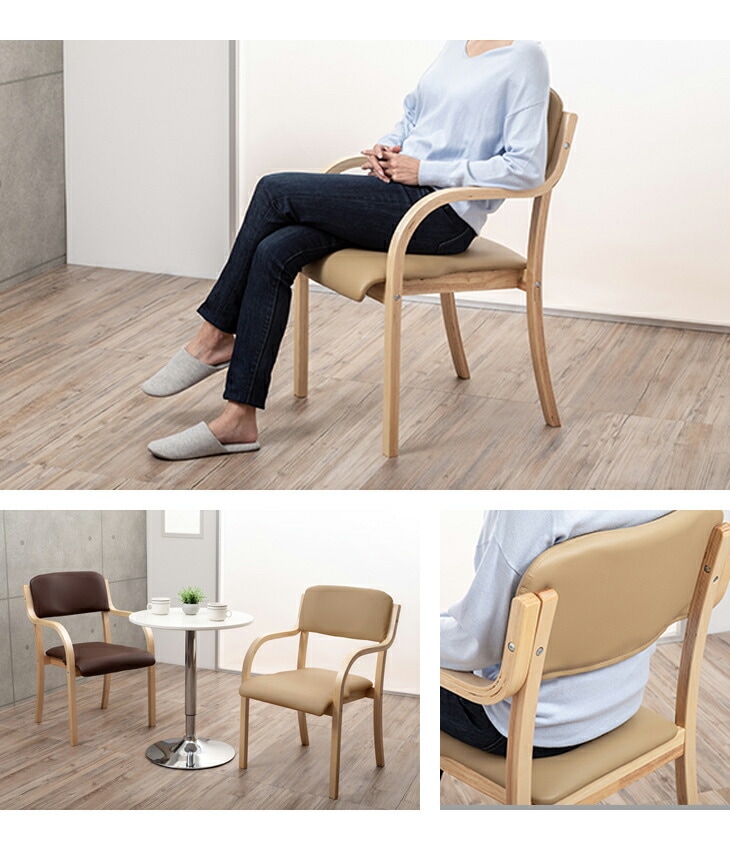 肘フレームが座面と水平の高さで、椅子から立ち上がる際の負担を緩和させる設計です。