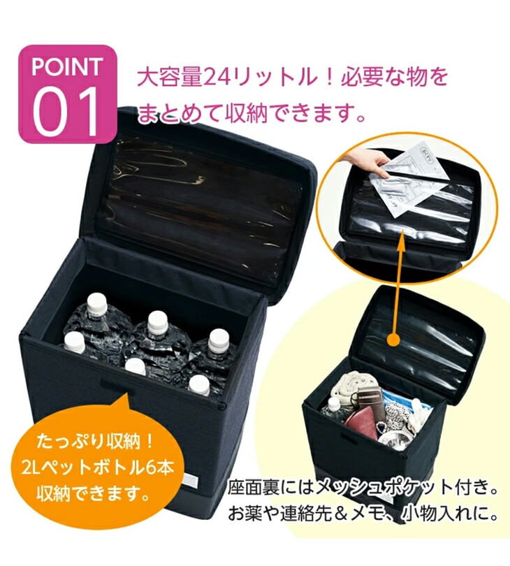 ・大容量約24L:2Lペットボトル6本収納可能。必要な防災グッズを1つに収納できる。