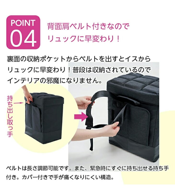 座れる玄関 防災バッグ COGIT 撥水 大容量24リットル リュック スツール