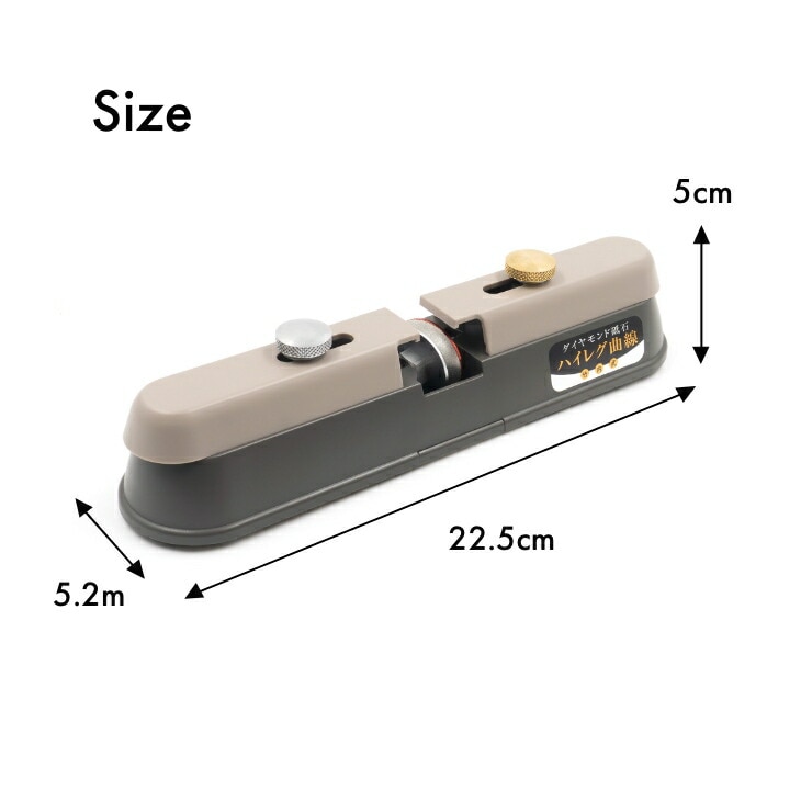 ●素材/本体:ABS樹脂、砥石:金属・ハイレグ曲線砥石(ダイヤコーティング)、片側ゲージ:超硬クローム仕上、芯棒:ステンレス、調整ネジ:(金色)真鍮、(銀色)真鍮にクロムメッキ