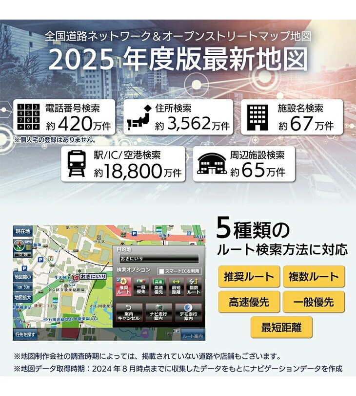 全国道路ネットワーク&オープンストリートマップ地図2025年度版最新地図を搭載!