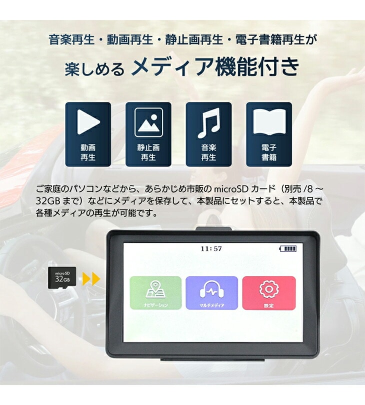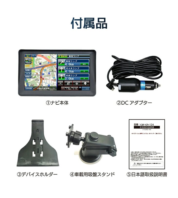 ●セット内容/本体、車載用DCケーブル、車載用吸盤スタンド、デバイスホルダー、取扱説明書(保証書)