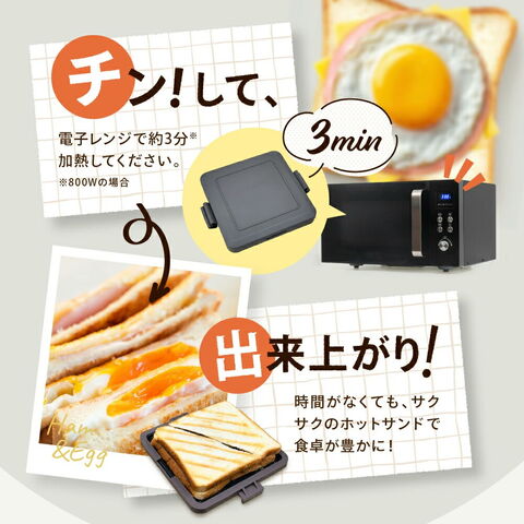 レンジで調理する ホットサンドメーカー レンジ調理 洗える 水洗いできる 食洗器OK