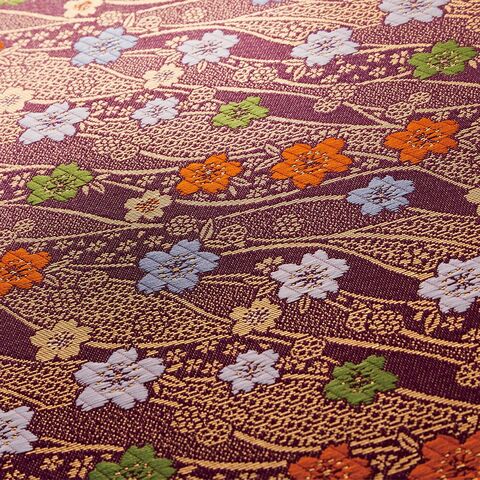 桐生織、七つの製織技法のひとつ「緯錦織(よこにしきおり)」で織り上げた生地を使用。