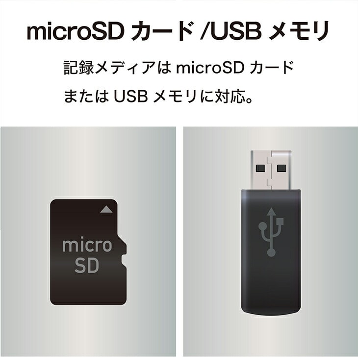 記録メディアはmicroSDカードまたはUSBメモリに対応。