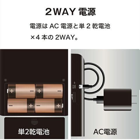 ●仕様/スピーカー:直径76mm/4Ω/3W、出力端子:イヤホン端子/直径3.5mmモノラル、入力端子:外部マイク端子/直径3.5mmモノラル、最大出力:スピーカー/3W、イヤホン/5mW、ファイル形式:MP3、録音ビットレート:128kbps、外部メモリー:microSDHC(スピードクラス4~10)/4GB~32GB(別売)、microSDXC(スピードクラス10)/64GB~128GB(別売)、USBメモリ/128GBまで、電源:単2形アルカリ電池×4本(別売)、DC5V/1.5A、付属USBケーブル(Type-A to Type-C)、連続使用時間:テープ(スピーカー)/約27時間、対応テープ:ノーマルポジションテープ