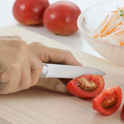 ●素材/万能包丁・ペティナイフ:刃部/ステンレス刃物鋼、柄部/ステンレス鋼・ABS樹脂、まな板:桐