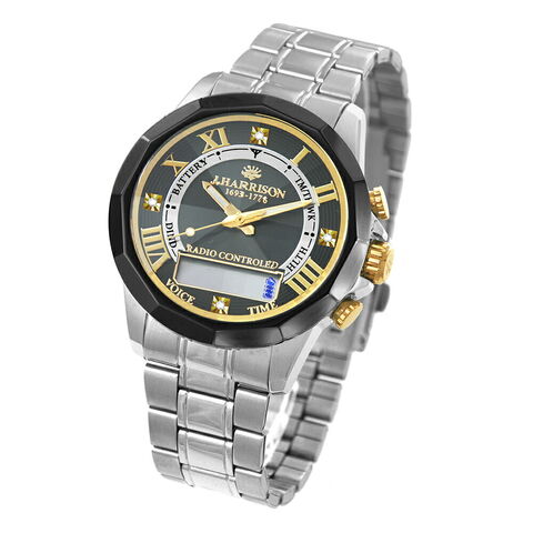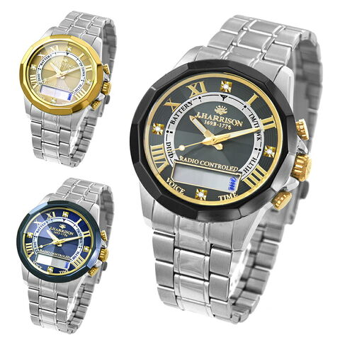 J・ハリソン4石天然ダイヤ付き音声電波時計 歩数計機能プラス