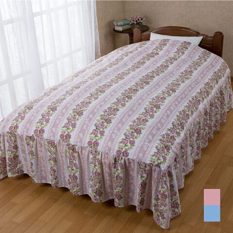 お手持ちの布団がベッドふとんに早変わりする、花柄の美しい布団カバーです。抗菌・防臭わたを使用しているため、汗をかきやすい夏場でも清潔にお使いいただけます。天然素材の綿100%生地を使用しており、肌触りが良く快適な寝心地。35cmのフリルがお部屋を華やかに演出し、布団の出し入れが簡単な全開ファスナー仕様、ズレ防止の6カ所紐付きで、使いやすさにもこだわりました。ピンクとブルーの2色からお選びいただけます。洗濯機で丸洗いできるので、お手入れも簡単です。