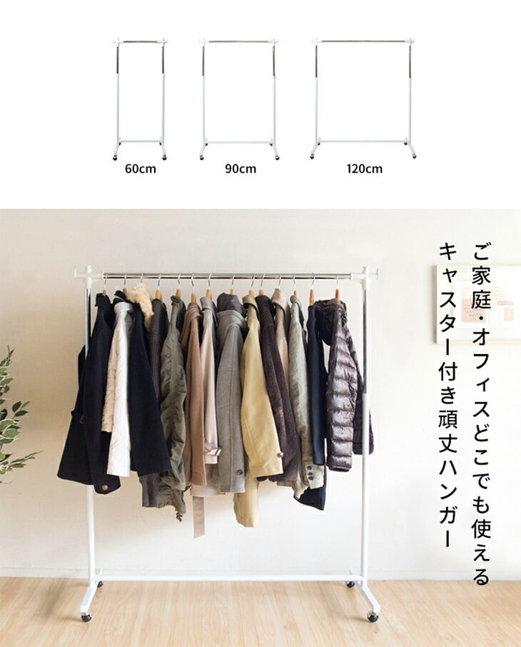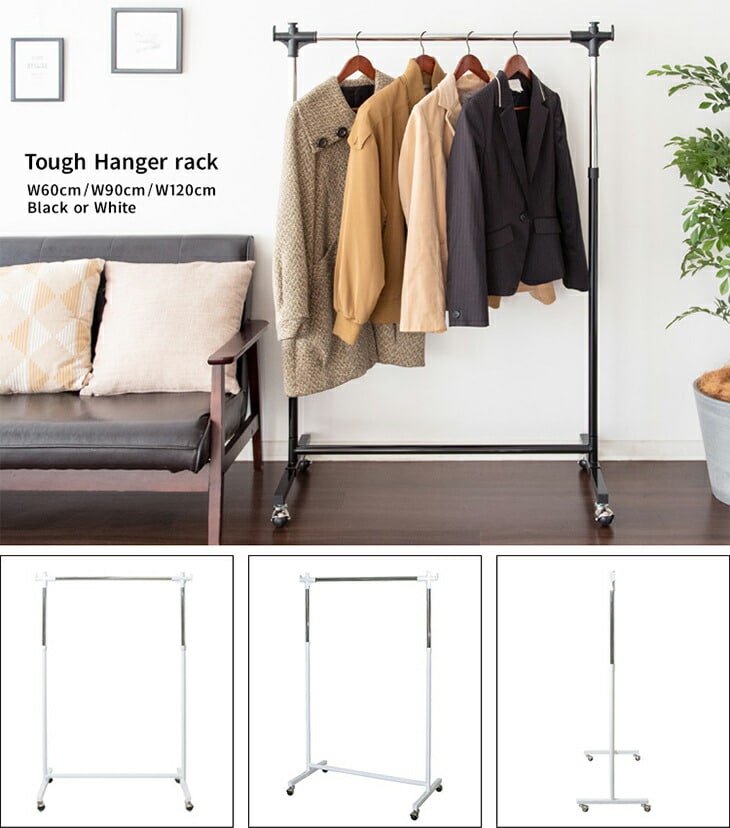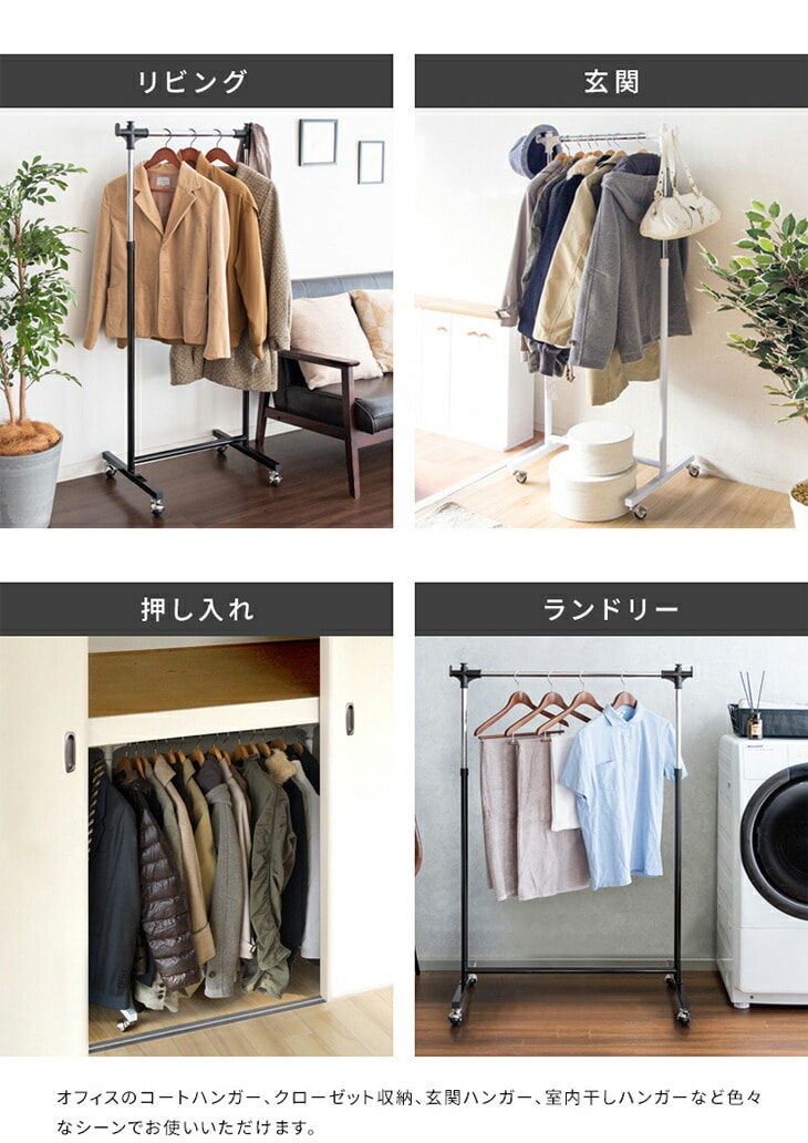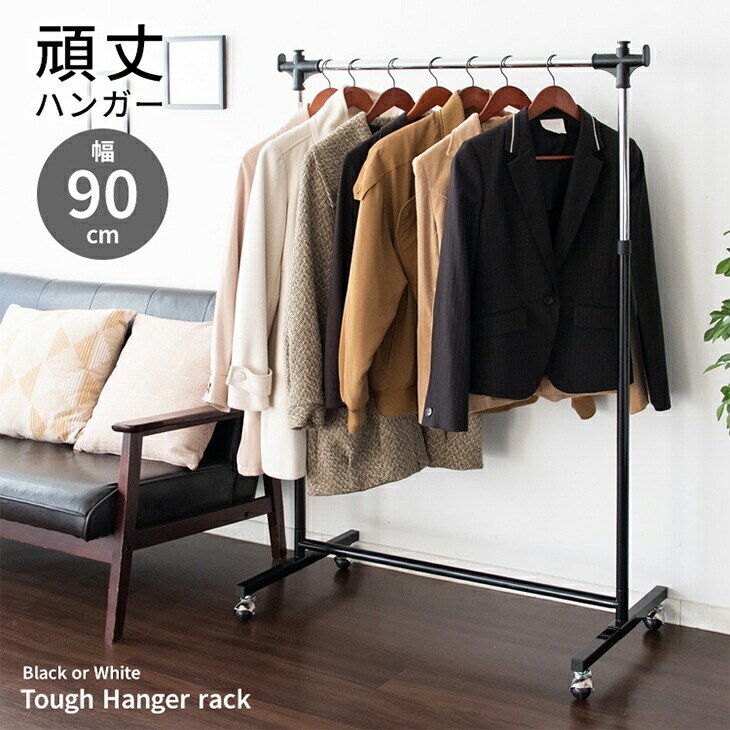 ハンガーラック 90cm幅 頑丈 大容量 キャスター付き プロ仕様 おしゃれ コートハンガー パイプハンガー 高さ調節 耐荷重20kg クローゼット 衣類収納 玄関 スリム シンプル ブラック ホワイト 業務用 家庭用
