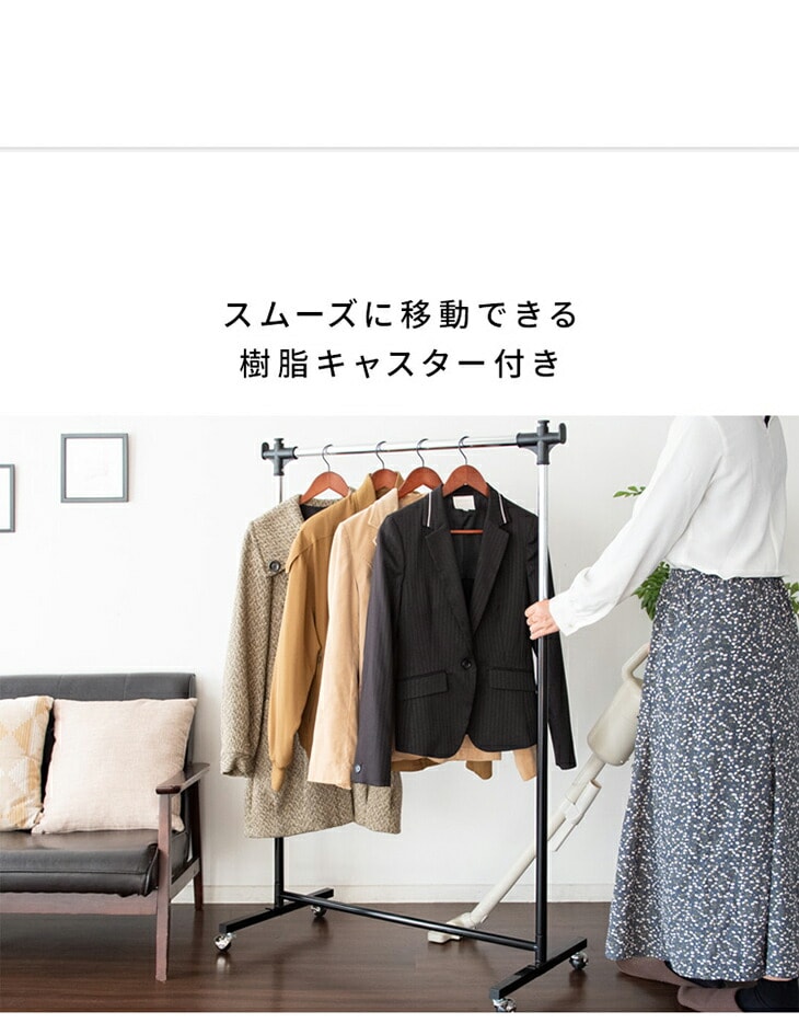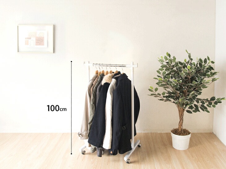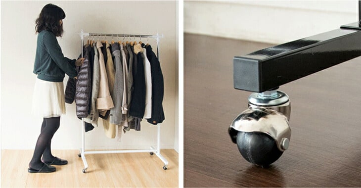便利なキャスターが付いているので、重たい衣類をかけた状態でも移動がスムーズ。掃除の際や、日当たりに合わせて場所を変えたい時も簡単に動かせます。