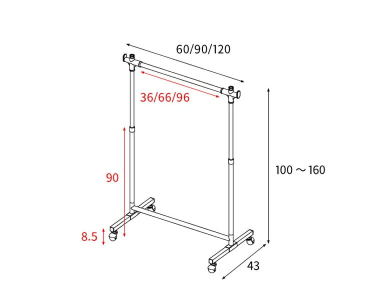 ●サイズ/約幅90×奥行43×高さ100~160cm、ハンガーバー有効長さ36cm