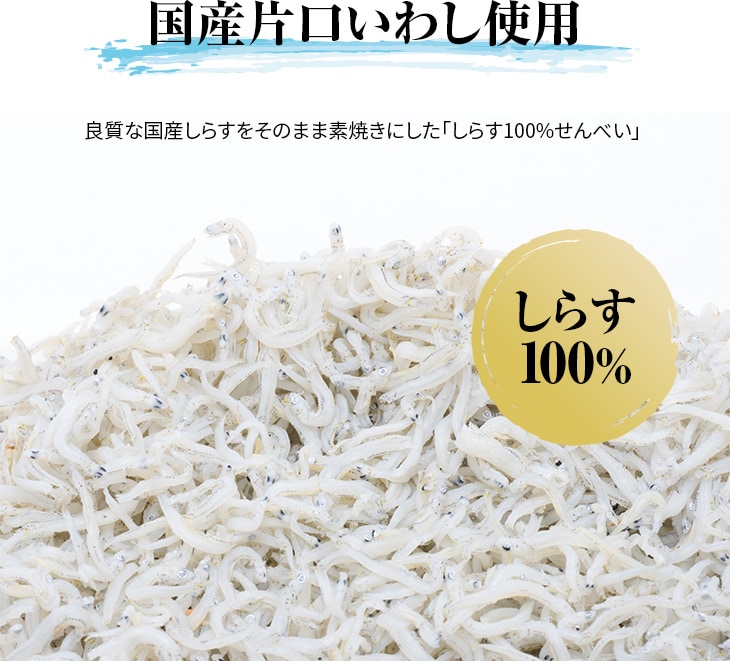 良質な国産しらすをそのまま素焼きにした「しらす100%せんべい」。カルシウムを美味しく摂れる逸品。