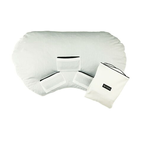 ●素材/まくら本体:熱可塑性エラストマー(中素材)、ポリエステル100%(側生地) 枕カバー:綿100%(表面)、ポリエステル65%+綿35%(裏面) 磁石:130ミリテスラ フェライト永久磁石、不織布バック:本体表側、四方テープ:ポリエチレン、本体裏側、ポケットハンドル:PP不織布、ファスナー:プラスチック