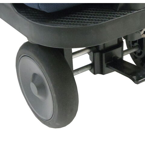 電車やバスに乗る時も安心な駐車ブレーキ付き。前輪は360度回転するので小回りが利き、後輪は固定式なので安定感があります。