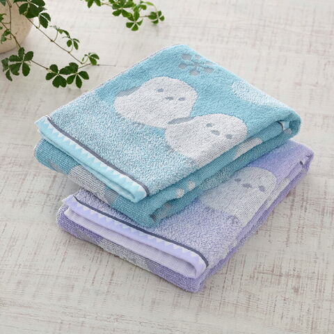 パープルとブルーの2色を、それぞれ2枚ずつセットにしました。ご家族で使い分けたり、お風呂用と洗顔用で分けたりと、毎日の生活に役立つ4枚セットです。