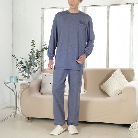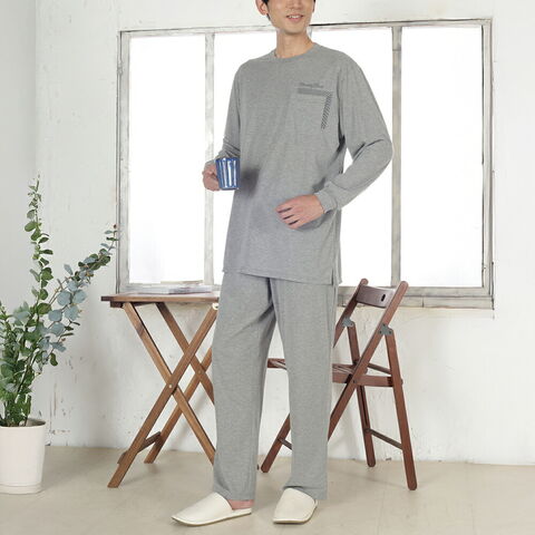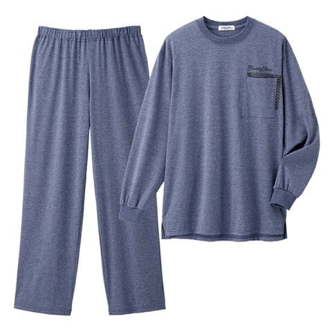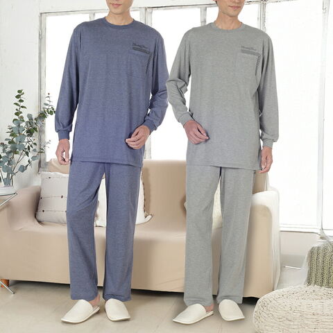 紳士綿混やわらか長袖ホームウエア 2色組 杢グレー・杢ネイビー メンズ パジャマ ルームウェア ホームウェア 長袖 2色組 綿混 やわらか 部屋着 紳士 男性 ゆったり リラックス 締め付けない M L LL 上下セット おうち時間 カジュアル