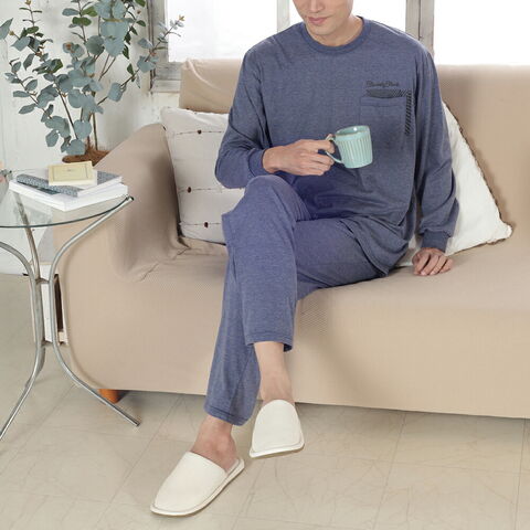 「家ではとことんリラックスしたい」「締め付けのない、ゆったりした服が欲しい」そんな方におすすめの、着心地にこだわった紳士用ホームウェアです。柔らかい綿混素材を使用し、ゆったりとしたルーズシルエットに仕上げました。お部屋でのくつろぎタイムや、ちょっとした家事の際も、ストレスフリーで快適に過ごせます。