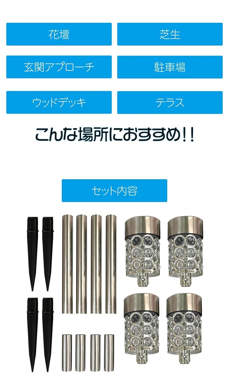 3.シーンに合わせて選べる2WAYの高さ: 付属のパイプの組み合わせを変えることで、高さを2段階に調整可能。花壇や通路沿いなど、シーンに合わせて最適なレイアウトが楽しめます。