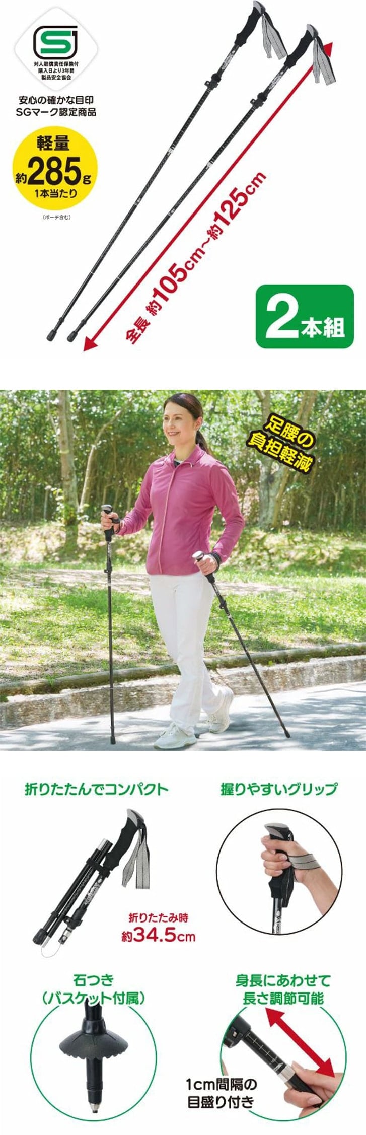 全身運動をサポート!折りたたみ式ウォーキングポール2本組