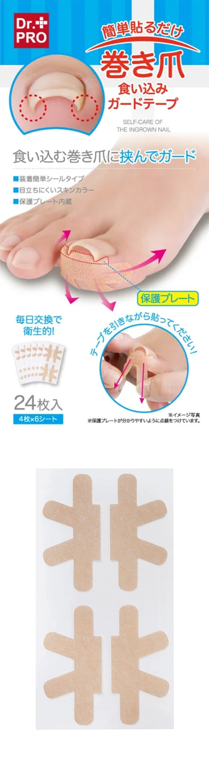 「親指のお肉に巻き爪が食い込んで痛い」「靴を履くとズキズキする」そんなつらい巻き爪のお悩みを、手軽にケアできる日本製「巻き爪食い込みガードテープ」です。医療現場でも使われている特殊ゲルを採用。親指のお肉に食い込む巻き爪を優しく押し上げ、痛みを緩和します。貼るだけなので、面倒な手間は一切不要です。