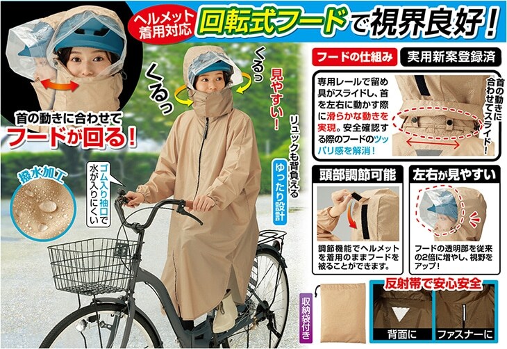 安全性が格段に向上!回転式フード付きレインコート
