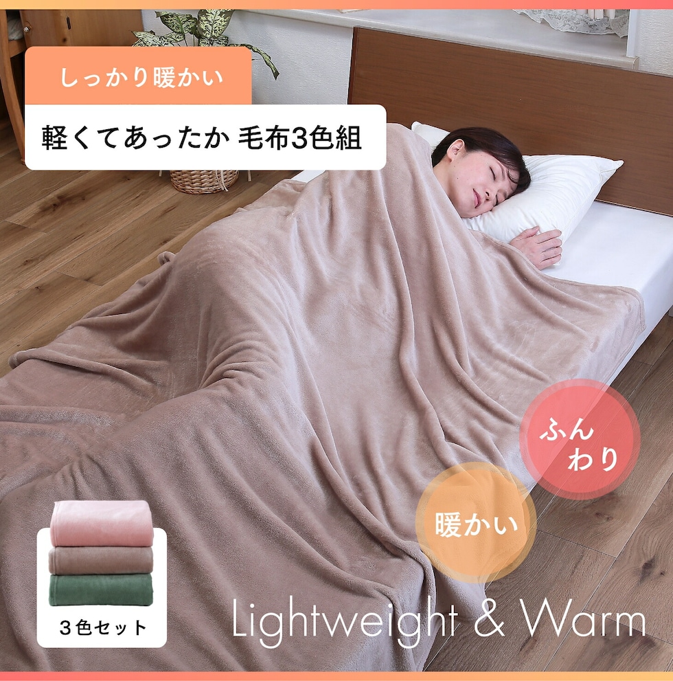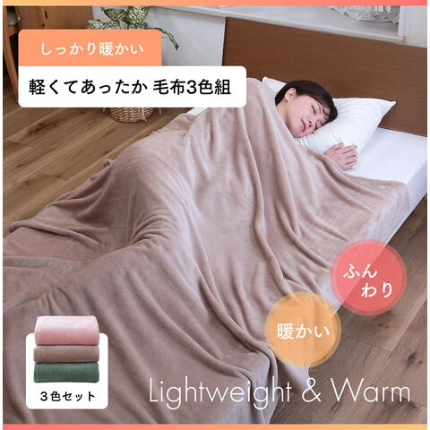 軽くてあったか毛布3色組 毛布 シングル 軽量 あったか 暖かい 3色組 セット とろける 肌触り ふんわり やわらか 軽い 洗える 洗濯 寝具 防寒