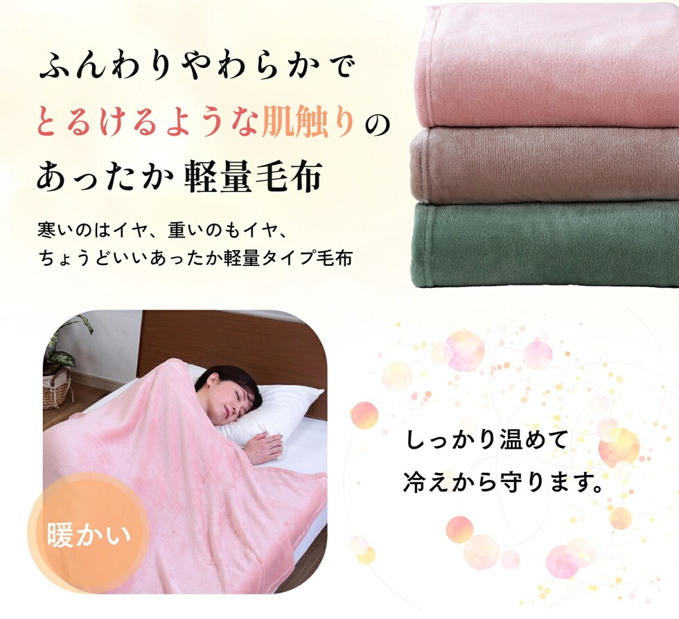 「重いのも寒いのもイヤ!」を解決!とろける肌触りのあったか軽量毛布3色組