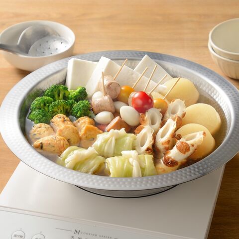 「家族や友人と鍋料理を楽しみたい」「ヘルシーな蒸し料理も手軽に作りたい」そんな願いを叶える、IHにもガス火にも対応した多機能なよせしゃぶ鍋です。つなぎ目のない一体型設計なので、汚れが溜まりにくく、お手入れが簡単。さらに、専用の蒸しプレートがセットになっているので、一台で鍋料理と蒸し料理が楽しめます。