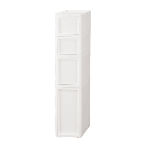 「キッチンや洗面所のデッドスペースを何とかしたい」「重い調味料やペットボトルを隠して収納したい」そんな願いを叶える、幅わずか18cmのスリムなストッカーです。高さは一般的なキッチンと同じ約85cm。中身が見えない清潔感のあるホワイト引出しで、キッチンやサニタリーの隙間にぴったりフィットし、収納力をアップさせます。