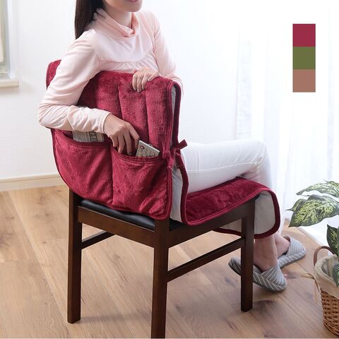 3.便利なポケット付き&ズレにくい: 背もたれ部分には、リモコンや雑誌などを収納できる便利なポケット付き。裏面は滑りにくい加工が施されており、結びひもで椅子にしっかり固定できます。