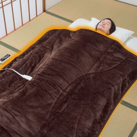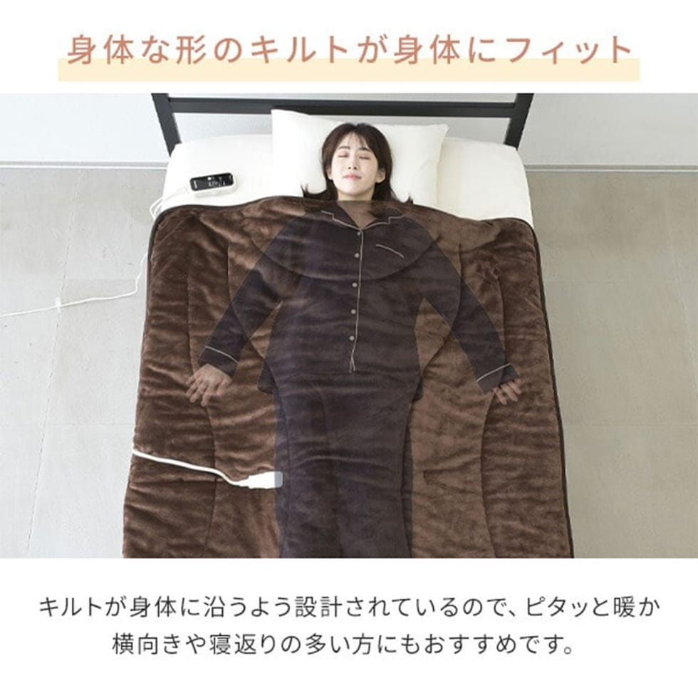 新発想の高効率3Dキルト採用!体にフィットする電気掛毛布です。暖かさを逃がさない特殊な3Dキルトと、冷えやすい足元を暖める頭寒足熱配線でぐっすり眠れます。横寝や寝返りの多い方にも最適!また、ダニ対策機能付きでいつでも清潔。電気代は強で使用の場合1時間あたり約1.1円と経済的です。肌触りの良いフランネル生地と中綿入りで、包み込まれるような温かさ。足元までぽっかぽか♪2種類のタイマー付きで便利!切り忘れ防止の12時間タイマーに加え、省エネ睡眠タイマーを搭載。入眠(ON)→就寝時(自動OFF)→起床時(自動ON)と自動で温度をコントロール(4.5時間・6間の設定OK)。室温センサー搭載で、朝方の冷え込みも自動でキャッチし快適です。手元のコントローラーで温度調節も可能です。