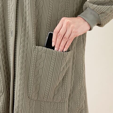 ふわっと軽やか!ケーブル柄がお洒落なフリースかっぽう着2色組